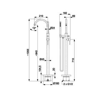 BATERIA MOZA WANNOWA, WOLNOSTOJĄCA, PVD GUN METAL GREY