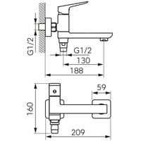 Jednouchwytowa naścienna armatura umywalkowa VITUS VW-EH-M z mieszaczem, wysięg 210 mm