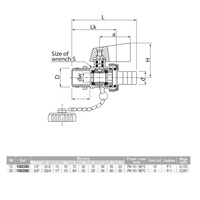 Kurek kulowy do wody zimnej, gorącej, sprężonego powietrza, glikolu PN 25 WZ motylek, DN 3/8" Art. 3036
