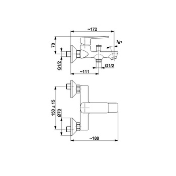Bateria wannowa ścienna KFA Armatura AGAT, kolor chrom
