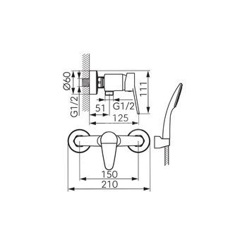 Bateria natryskowa ścienna KFA Armatura AGAT, kolor chrom