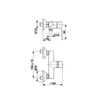 Bateria umywalkowa ścienna FERRO ISSO, chrom, z przyłączem natrysku