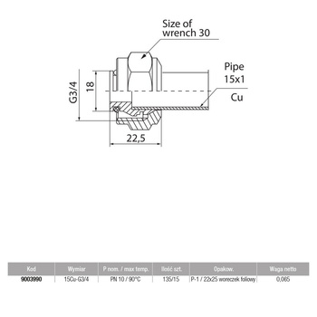 Złącze VALVEX CoPPer, mosiądz (niklowany), 15 mm x 3/4'' (zz x GW)