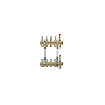 Rozdzielacz do ogrzewania podłogowego QIK STANDARD 5-obieg. mosiądz GW 1'' x GZ 3/4'' + przepływomierz