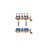 Rozdzielacz do ogrzewania podłogowego QIK STANDARD II 5-obieg. mosiądz GW 1'' x GZ 3/4'' + przepływomierz
