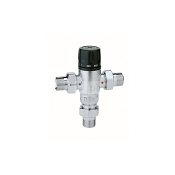 ( ilość produktów: 130 )Regulowany termostatyczny zawór mieszający z zaworami zwrotnymi, filtrami na wlotach i złączkami zaciskowymi O 22 30-65 st. C