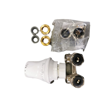 Set instalacyjny (głowica TC – S4 zacisk, dwururowy blok kurków kątowych ME1/50, nyple 1/2" x 3/4", komplet złącza A3 - 16 x 2,0)