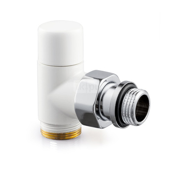 Zawór termostatyczny Thera Design, biały, narożny, prawy, 1/2", konieczne złączki FEM24C/FEM24P/FEM24M