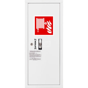 Hydrant DN 52 wnękowy boczny ze zwijadłem, z miejscem na gaśnicę, wąż 15 m, zamek patent, RAL 9003 lewy