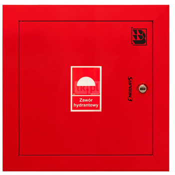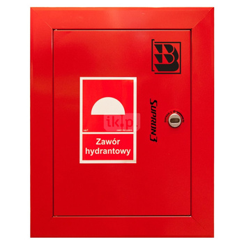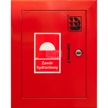 Hydrant DN 52 wnękowy boczny ze zwijadłem, z miejscem na gaśnicę, wąż 15 m, zamek patent, RAL 9003 prawy