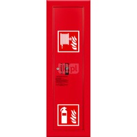 Hydrant DN 52 wnękowy boczny z koszem, z miejscem na gaśnicę, wąż 20 m, zamek patent, RAL 3000 prawy