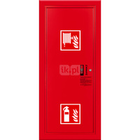 Hydrant DN 33 wnękowy boczny z miejscem na gaśnicę, wąż 30 m, ocynk fasada, zamek patent, RAL 3000 lewy