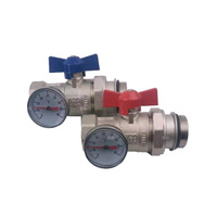 Zestaw 2 zaworów kulowych prostych z termometrem i uszczelką do łączenia z rozdzielaczami CS