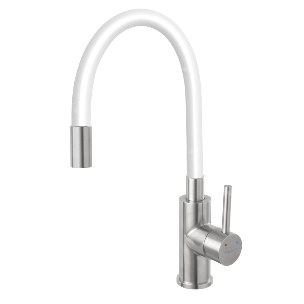 Nowoczesna bateria kuchenna z elastyczną i obrotową wylewką należąca do serii ZUMBA INOX sprawi, że zmywanie będzie łatwe i komfortowe. Wylewka, której wysokość można regulować w zakresie od 28 do 44 cm, a zasięg od 15 do 35 cm pozwoli na mycie naczyń o różnych kształtach i napełnianie ich wodą. Bateria zlewozmywakowa została wyposażona w wygodny w użyciu niewielki uchwyt. Posiada gwarantujący niezawodną pracę regulator ceramiczny. Biała barwa wylewki idealnie będzie komponować się ze ścianami, podłogą o