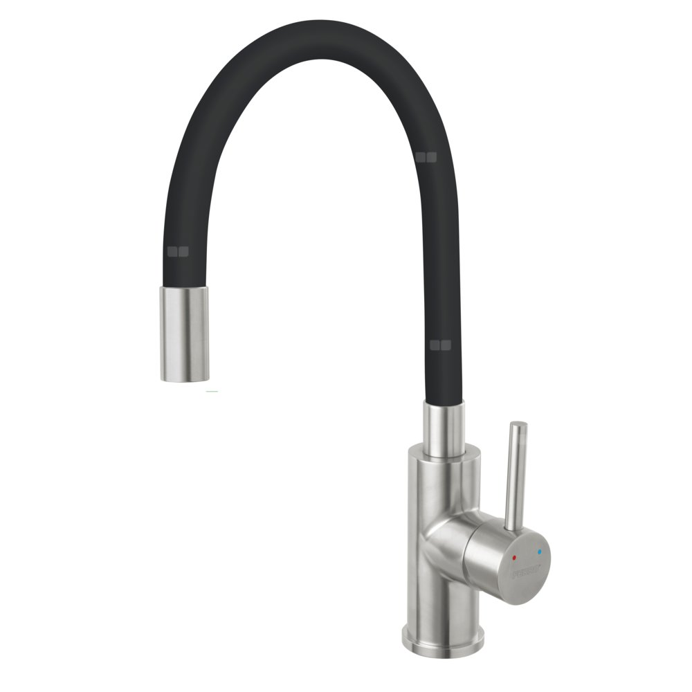 Bateria kuchenna z elastyczną i obrotową wylewką zapewni wygodne zmywanie oraz napełnianie wodą naczyń o różnych kształtach. Wysokość wylewki można regulować w zakresie od 28 do 44 cm, a jej zasięg od 15 do 35 cm. Komfort użytkowania gwarantuje również regulator ceramiczny oraz klasyczny uchwyt. Bateria jest świetną propozycją do nowocześnie urządzonych kuchni. Stworzy znakomitą parę z eleganckim granitowym zlewozmywakiem. Czarna barwa wylewki nada wnętrzu nowoczesny i modny charakter.