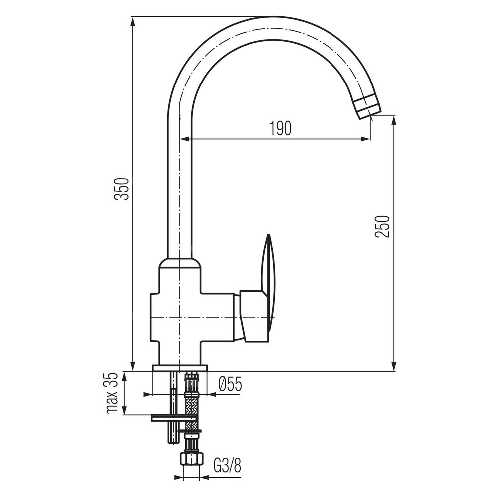 - wysoka, obrotowa wylewka tworzy strefę komfortu dla użytkownika, zapewniając maksymalną swobodę korzystania z baterii