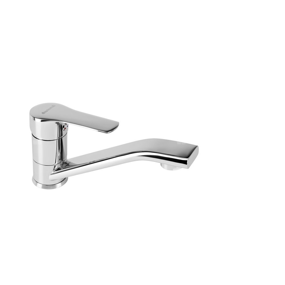 Bateria umywalkowa stojąca KFA Armatura MOHIT, chrom, obrotowa, płaska wylewka, montaż blat / otwór na baterię