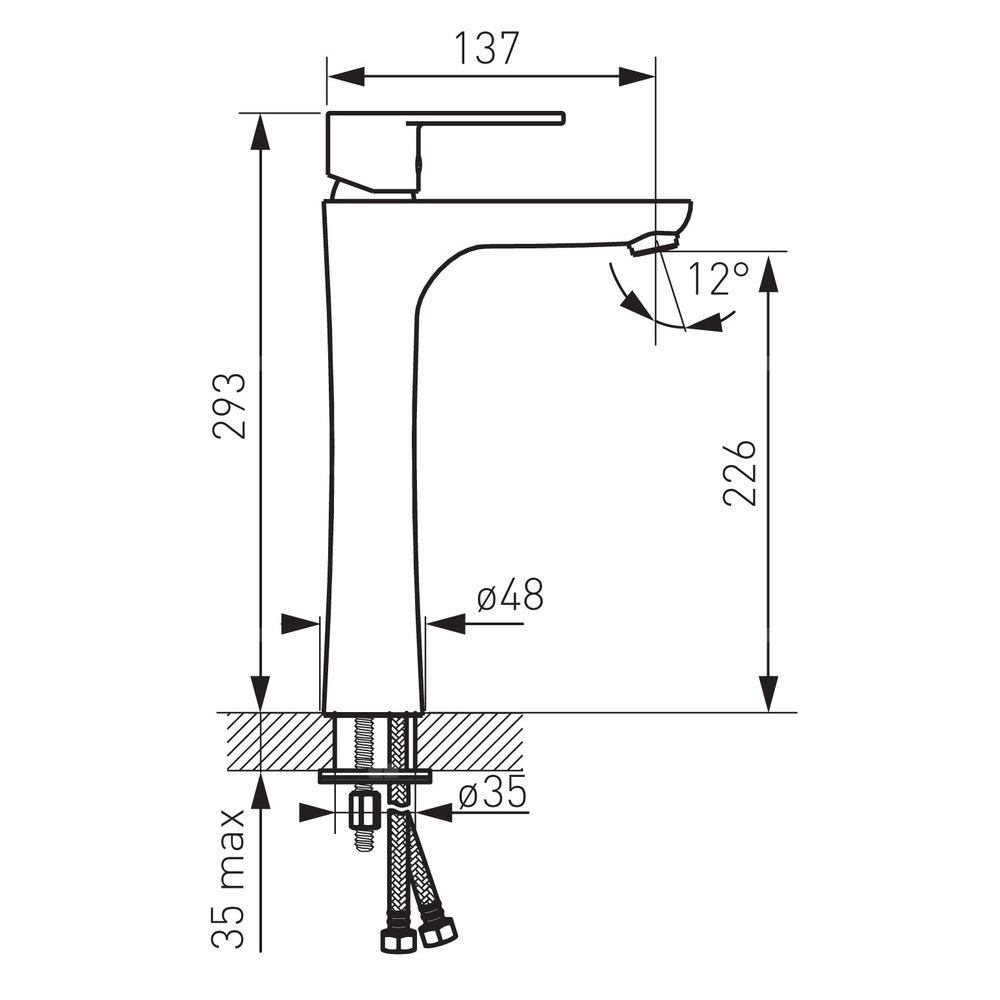 Bateria umywalkowa nablatowa o charakterystycznym, owalnym kształcie. Obły kształt korpusu i wylewki ułatwi utrzymanie baterii w czystości, krople wody nie będą osiadać, pozostawiając przy tym mniej osadu wapiennego.