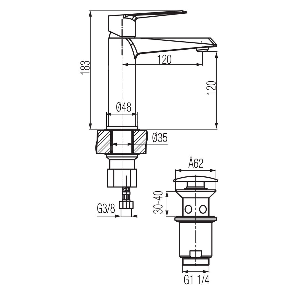 - korek spustowy typu click-clack
