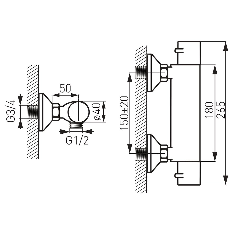 Bateria natryskowa wyposażona jest w głowicę termostatyczną, która będzie dostarczać do baterii wodę o wybranej temperaturze. Funkcja termostatu zapewni również dodatkową ochronę przed poparzeniem się gorącą wodą. Uniwersalne przyłącze 1/2" pozwala na wybranie dowolnego zestawu natryskowego.