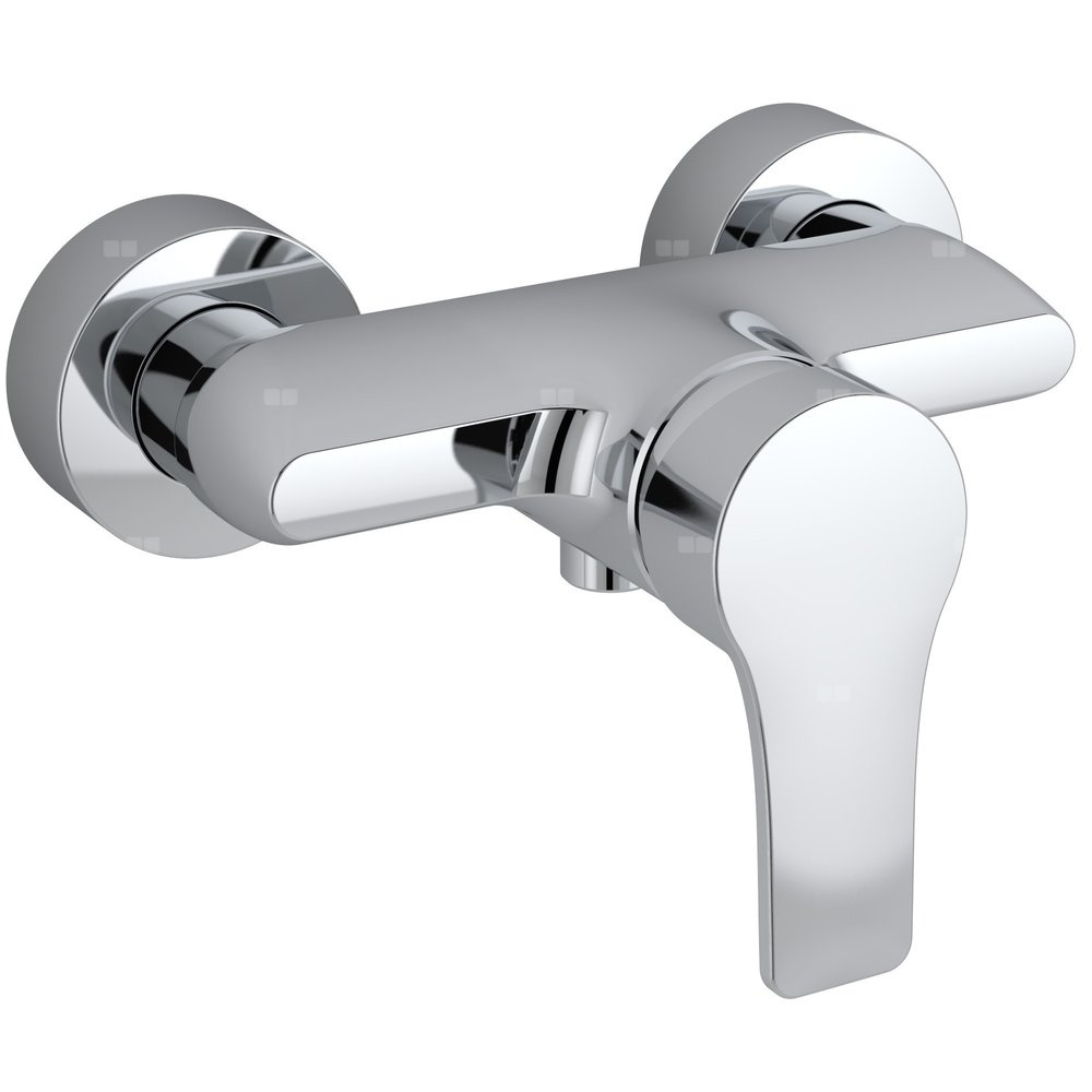 Bateria natryskowa ścienna AP DN 15 z blokadą przeciwko cofaniu się wody oraz systemem samozabezpieczającym, rekomendowanym przez Niemieckie Towarzystwo Gazociągowe i Wodociągowe DVGW. Połączenia kolankowe: izolacja akustyczna, regulowane, 137.
