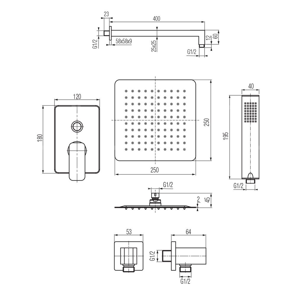 - przyłącze kątowe, pełniące jednocześnie funkcję uchwytu punktowego na rączkę natrysku