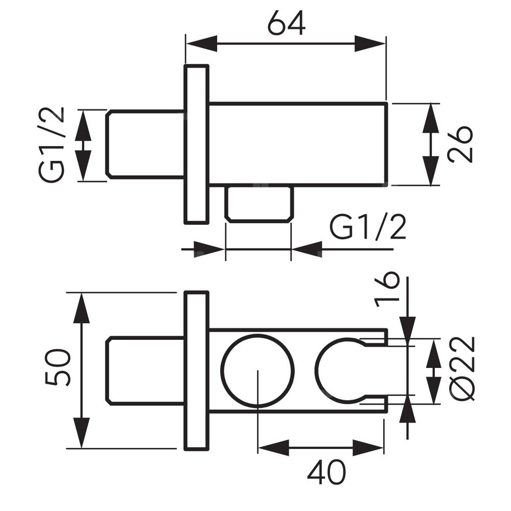 Przyłącze kątowe G1/2 do węża natryskowego, z uchwytem, chrom
