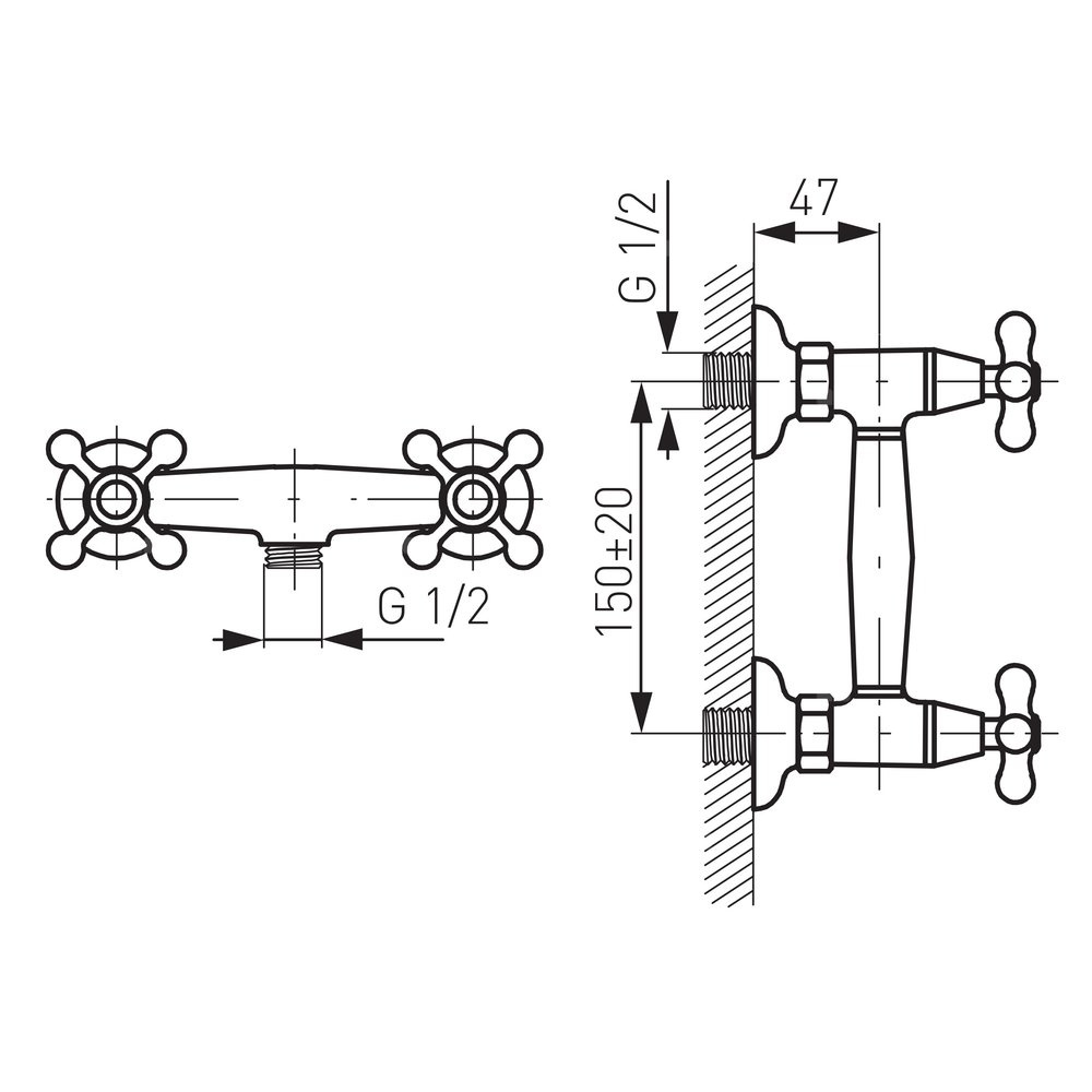Bateria natryskowa w unikalnym dizajnie retro, idealnie pasująca do łazienek w stylu vintage. Uniwersalne przyłącze 1/2" pozwala na wybranie dowolnego zestawu natryskowego.