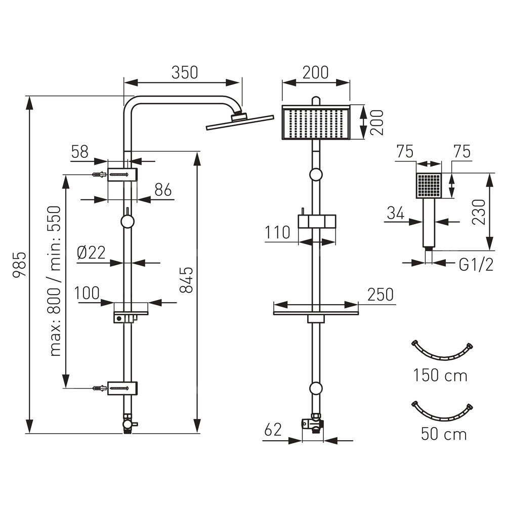 - Długość węża natryskowego: 1500 mm