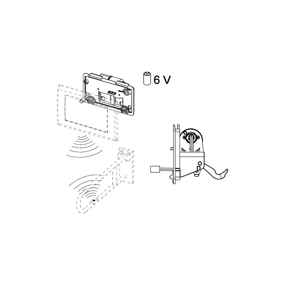 Mechanizm spłukujący elektroniczny do WC TECE planus, zasilanie bateryjne 6 V, przycisk elektryczny montowany na poręczy - wersja bezprzewodowa