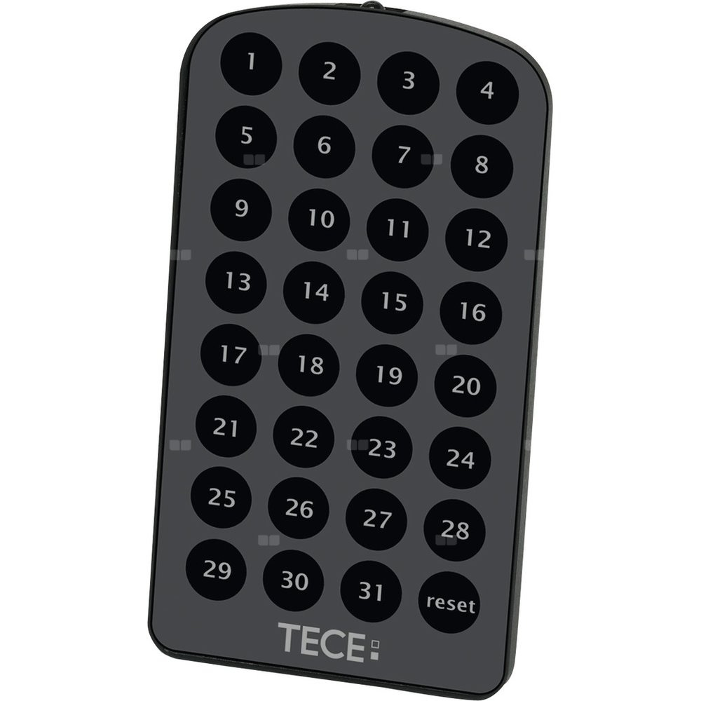 Pilot do programowania elektroniki TECElux mini. Możliwe do zaprogramowania funkcje: zakres detekcji, spłukiwanie higieniczne, czas uruchomienia, spłukiwanie bezpieczne i stopień jasności podświetlania wyświetlacza.
