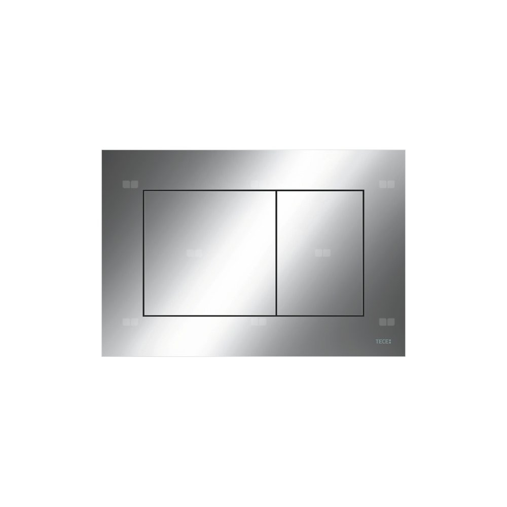 Przycisk spłukujący do spłuczek TECE uruchamiany z przodu lub od góry. Bardzo płaski przycisk spłukujący z tworzywa sztucznego, wyposażony w gumowe odboje z obu stron. W komplecie popychacze i materiały montażowe. Odpowiedni do montażu zlicowanego w połączeniu z ramką montażową do WC i ramką dystansową TECE. Kompatybilny z płytką maskującą z koszem na kostki czyszczące.