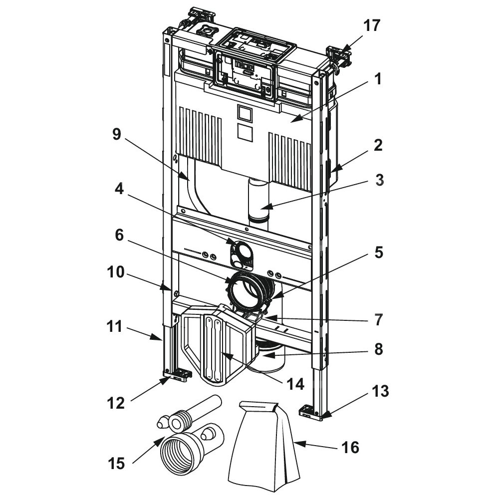 - zestaw przyłączeniowy do instalacji do uniwersalnych stelaży do toalet myjących 980 mm