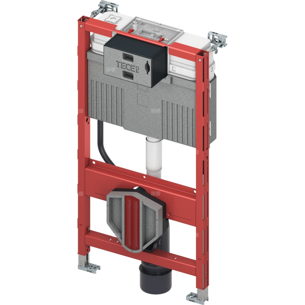 Moduł WC z instalacją przycisku spłukującego „easy fit” i rurką instalacyjną do podłączenia elektronicznych toalet myjących. Do montażu na konstrukcjach TECEprofil przedściennych lub przed ścianą pełną.