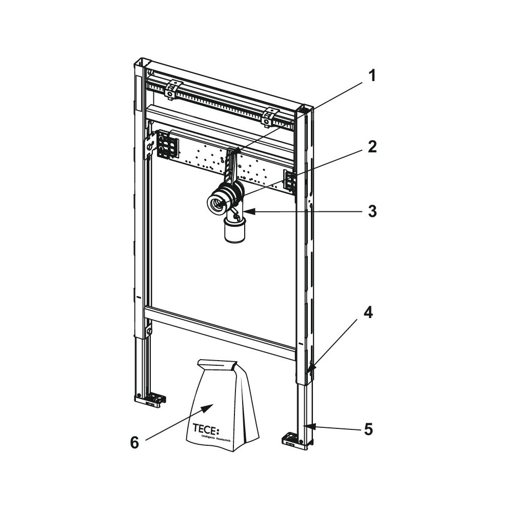 Stelaż montażowy pod umywalkę do mocowania na kształtownikach stalowych TECEprofil lub do montażu w ścianach z profili metalowych lub drewnianych oraz jako ścianka przednia lub moduł narożnikowy.