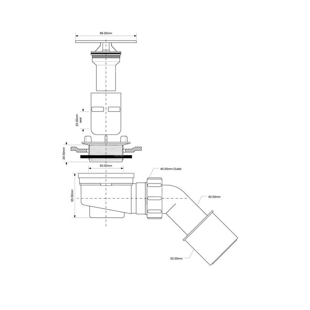 Syfon brodzikowy "niski" wys.65mm z odejściem 40/50mm czyszczony od góry ,pokrywa stal nierdzewna 88mm