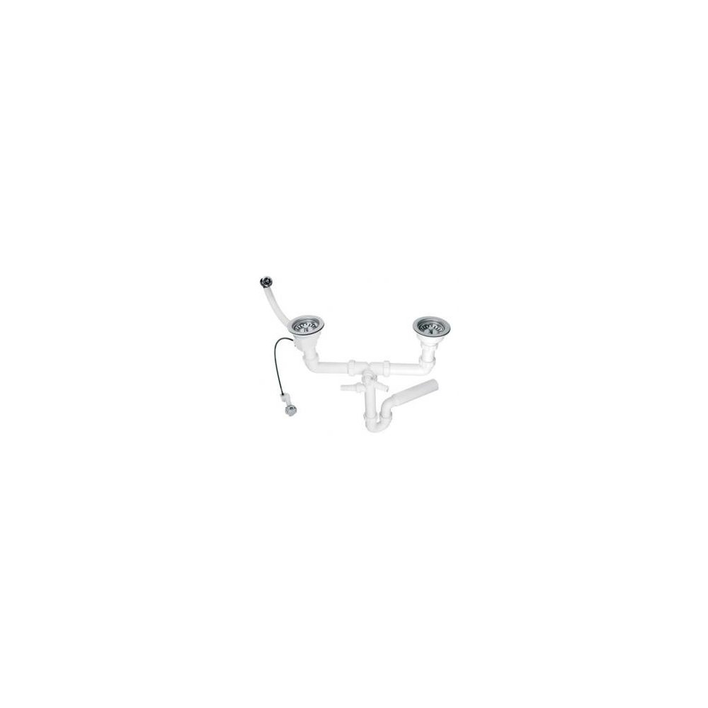 Syfon zlew.rurowy podwójny 3,5"X50mm z podłą.pralki lub zmywarki,spust z mech.automatycznym, przelew