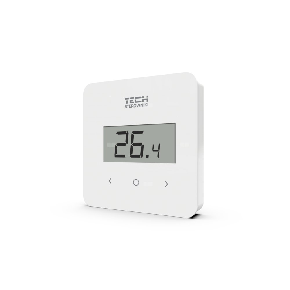 Funkcje: sterowanie temperaturą pokojową, czasowy program ogrzewania, pomiar wilgotności powietrza, sterowanie według temperatury podłogi (w przypadku wykorzystania czujnika