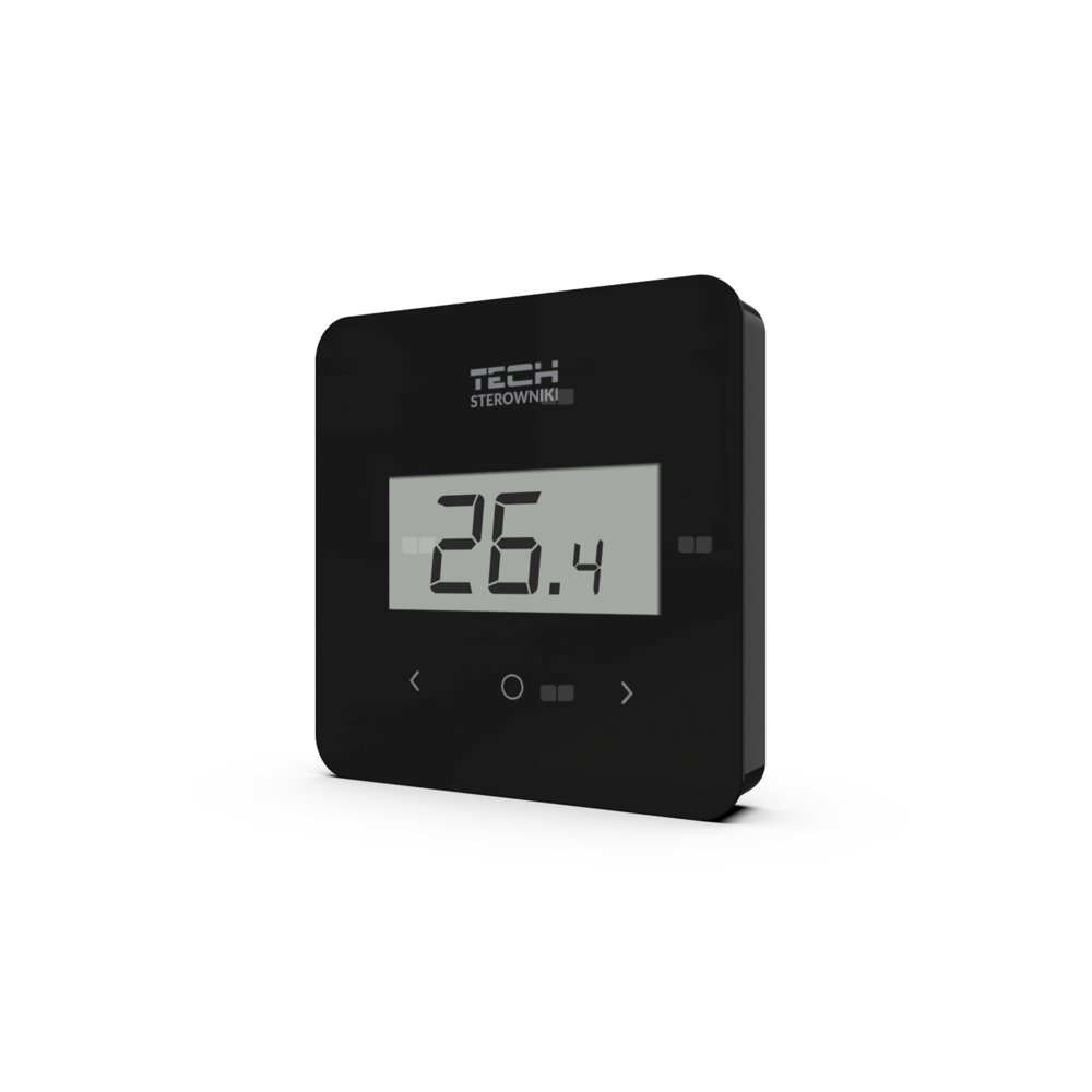 Funkcje: sterowanie temperaturą pokojową, czasowy program ogrzewania, pomiar wilgotności powietrza, sterowanie według temperatury podłogi (w przypadku wykorzystania czujnika