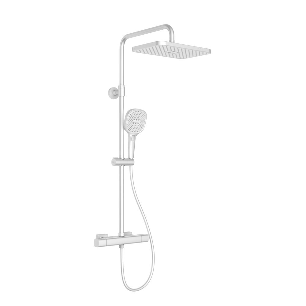 Deszczownia malaga z baterią termostatyczną, natryskową, ścienną, white