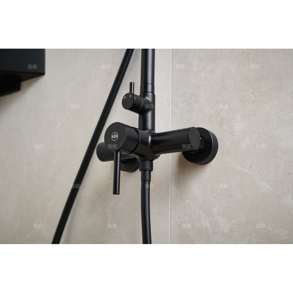 Deszczownia moza z baterią natryskową ścienną, black