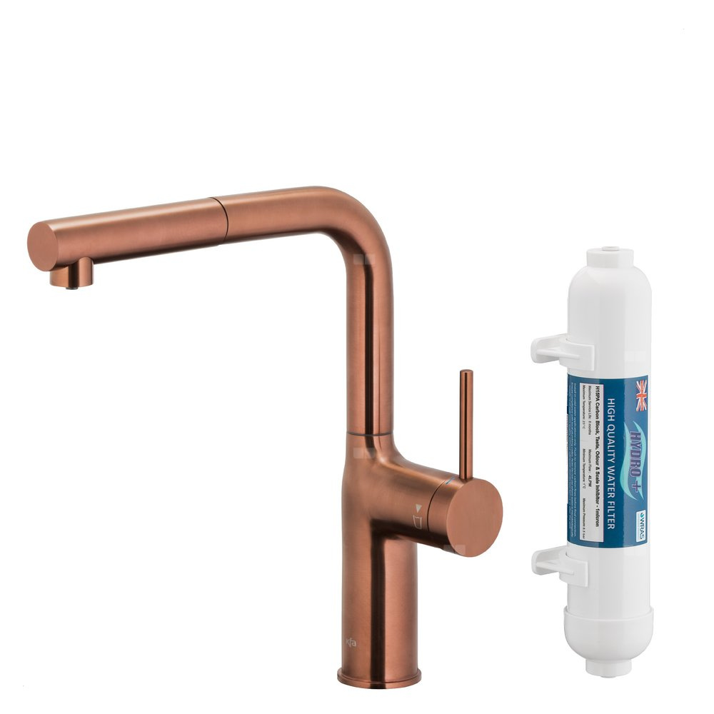 Bateria kuchenna duero pure move pull-Out, stojąca, filtrująca z obrotową i wyciąganą wylewką, brushed rose gold + Filtr hydro+