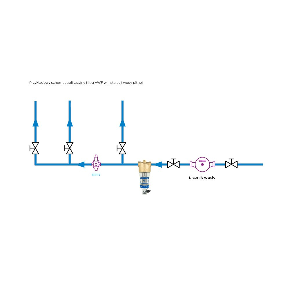 Stosowany w instalacjach wody pitnej.Montowany pomiędzy licznikiem wody a reduktorem ciśnienia.