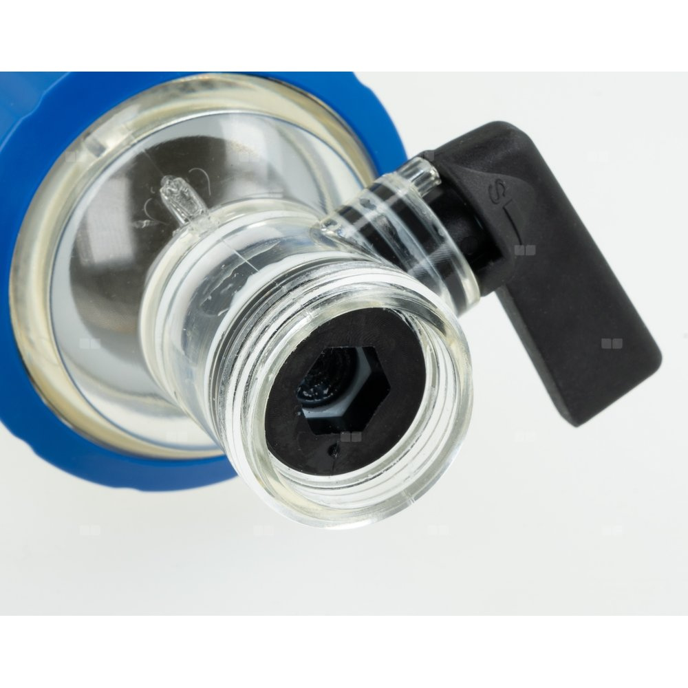 Korek G1/4" można zastąpić manometrem, w celu kontroli ciśnienia na wlocie do filtra.
