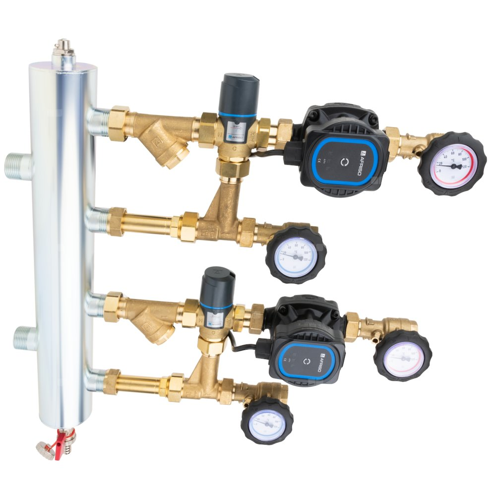 Grupa pompowa AFRISO BPS 911 AP GZ x GW 1'' x 3/4'', z zaworem mieszającym, z zaworem termostatycznym, z pompą obiegową AFRISO APH 160 15-7/130 mm