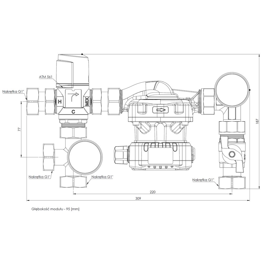 Stosowany w instalacjach grzewczych.Montowany między źródłem ciepła a rozdzielaczem ogrzewania płaszczyznowego w szafce rozdzielacza.