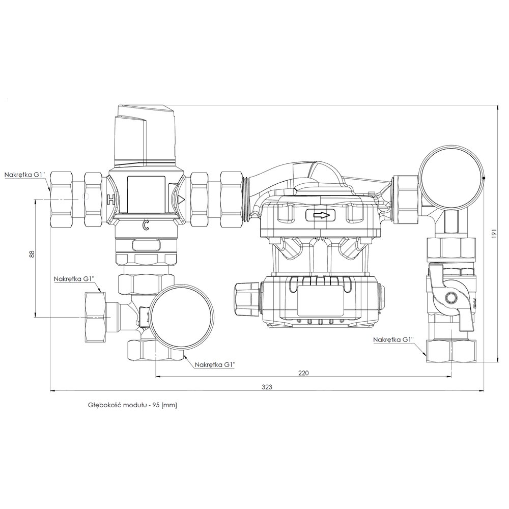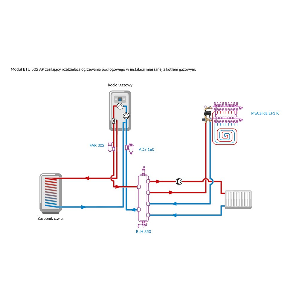 Stosowany w instalacjach grzewczych.Montowany między źródłem ciepła a rozdzielaczem ogrzewania płaszczyznowego w szafce rozdzielacza.