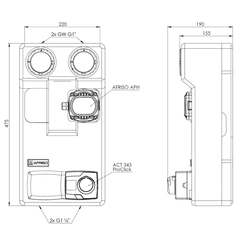 Grupa pompowa AFRISO PrimoTherm 180-2 AP DN 25 3-WM-R Vario GZ x GW 1 1/2'' x 1'', z zaworem mieszającym, z izolacją, z pompą obiegową AFRISO APH 361 25-7/180 mm