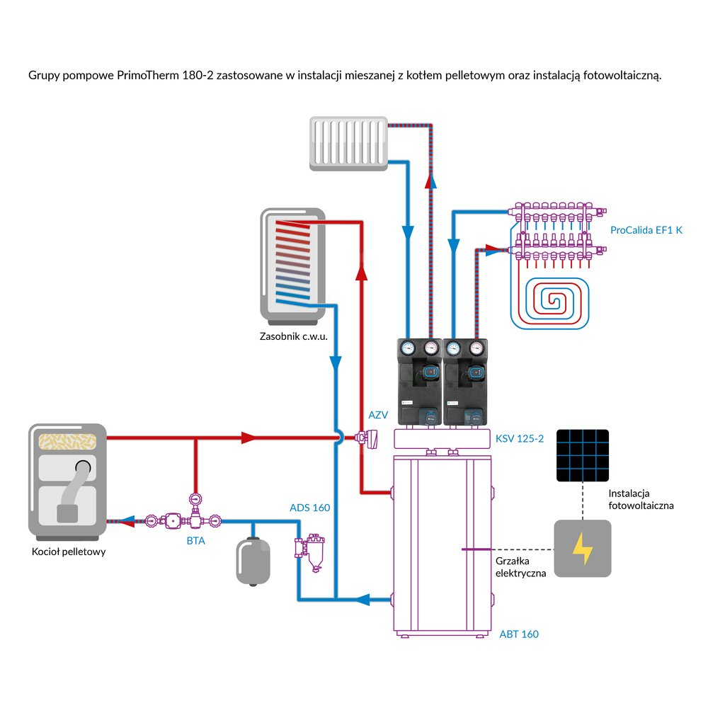 Stosowana w instalacjach grzewczych i chłodzących.Montowana na rozdzielaczu KSV, buforze ABT 50/ABT 160 lub jako niezależny element instalacji.
