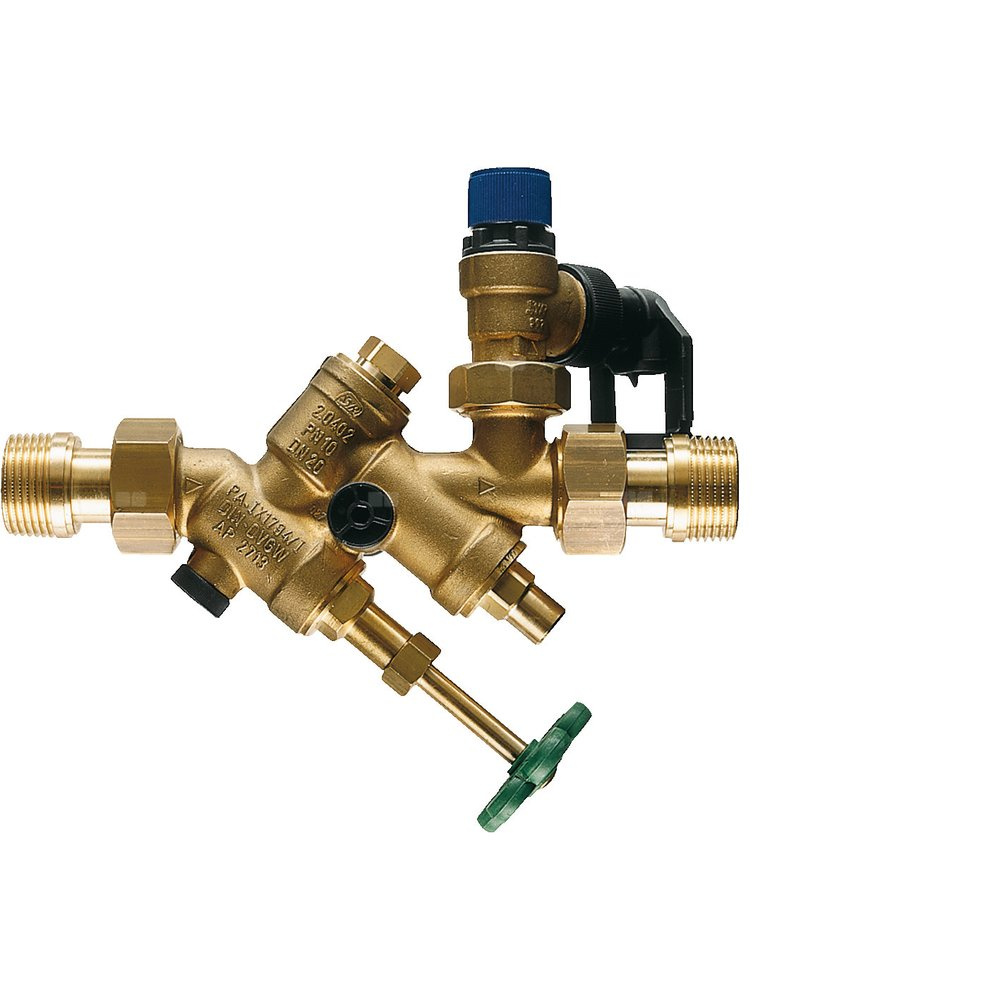 • Do zakresu dostawy należy zawór odcinający, zawór zwrotny z mechanizmem kontrolnym, przyłącze manometru, membranowy zawór bezpieczeństwa i lejek odpływowy.